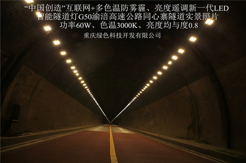 今年5月份,重慶渝涪高速公路有限公司與重慶綠色科技開發有限公司就G50滬渝高速黃草山、同心寨、廟堡隧道LED綠色照明節能改造項目,以合同能源管理模式簽訂了合同。該項目使用“中國創造”互聯網+多色溫防霧霾、亮度遙調新一代LED智能隧道燈及遠程智能控制系統,對原隧道3629盞鈉燈實施綠色照明節能改造。三個隧道的六個隧道單元,總長度為5.5公里,雙邊布燈11公里,是目前國內外隧道照明中使用該產品里程最長、數量最多的綠色照明工程。該工程現已全面竣工并投入使用。